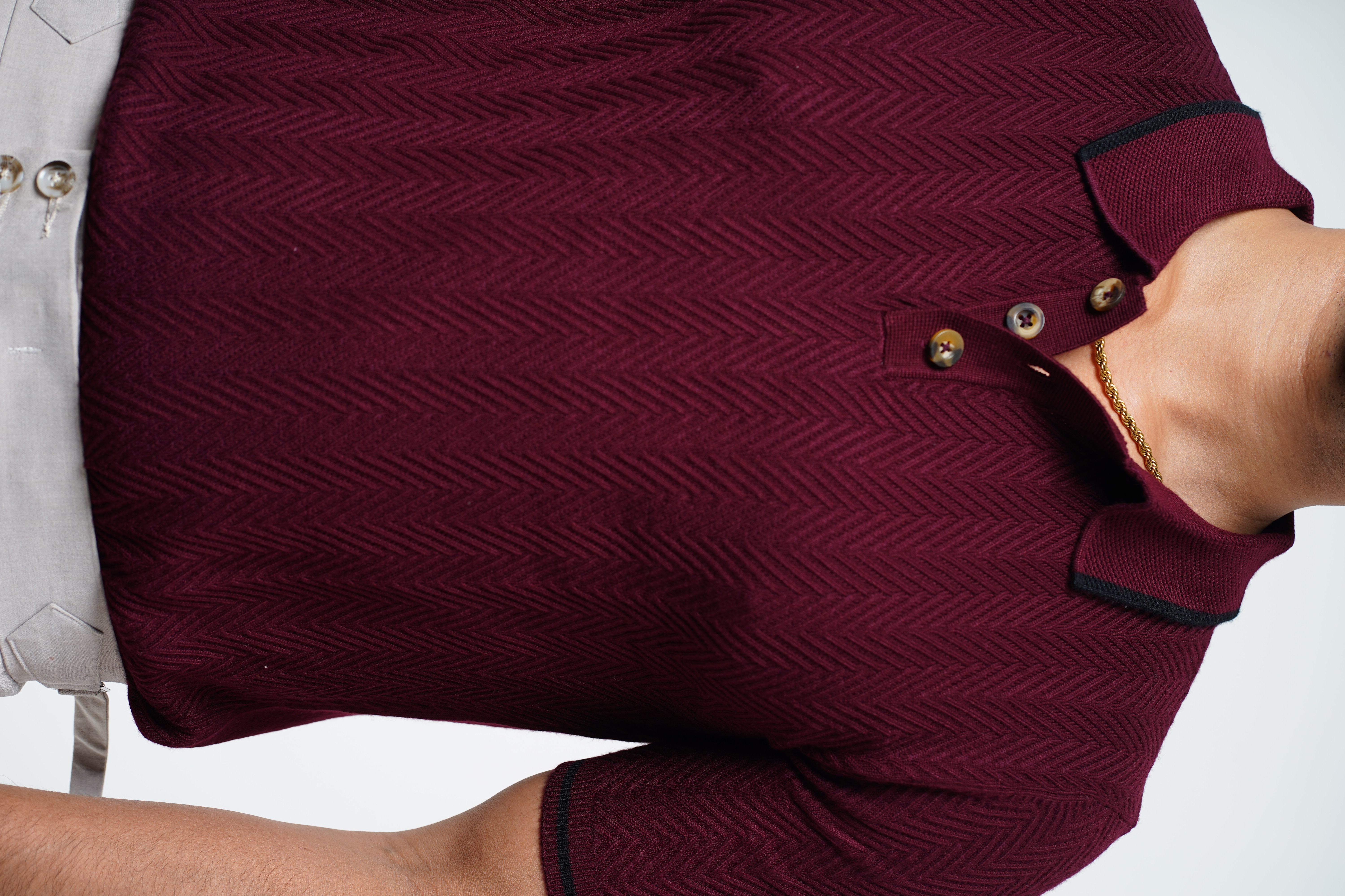 Herringbone wave pattern blood red knitted polo