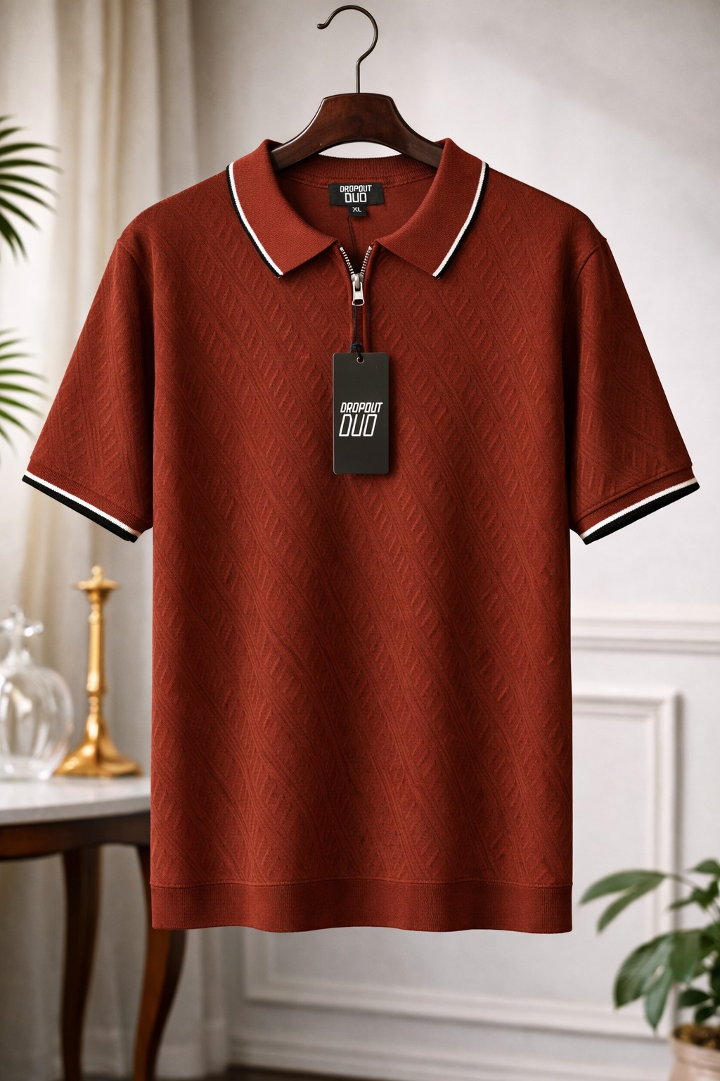 Introducing the Dropout Duo Old Money Pattern Knit Polo – where heritage craftsmanship meets timeless sophistication.