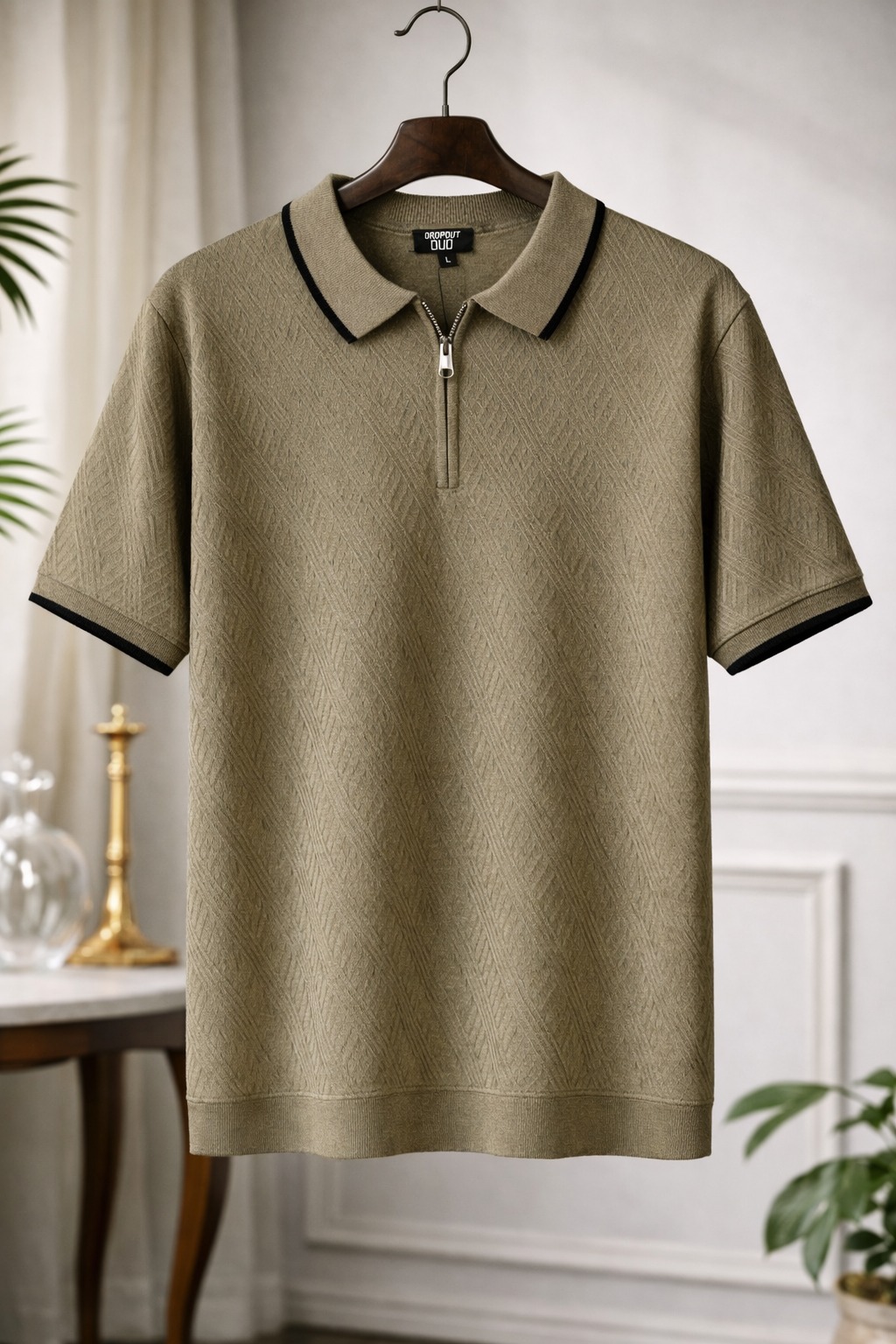 Olive Textured Zip Polo